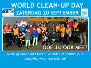 Op 20 september is het World Clean-up day. Om 9.00 uur verzamelen we bij de gemeentewerf en lopen we langs verschillende routes naar de Poelboerderij. Tussen 9.30 en 12.00 uur kun je bij WelzijnWonenPlus in de Omslag materialen ophalen en na een rondje afval verzamelen weer inleveren. Na afloop krijg je iets te drinken en wat lekkers. Maak jij samen met buren, vrienden of familie jouw omgeving weer wat schoner? |