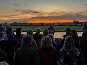 Ongeveer 50 mensen wandelden vorige week de zonsopgang tegemoet om stil te staan bij suïcidaliteit. |