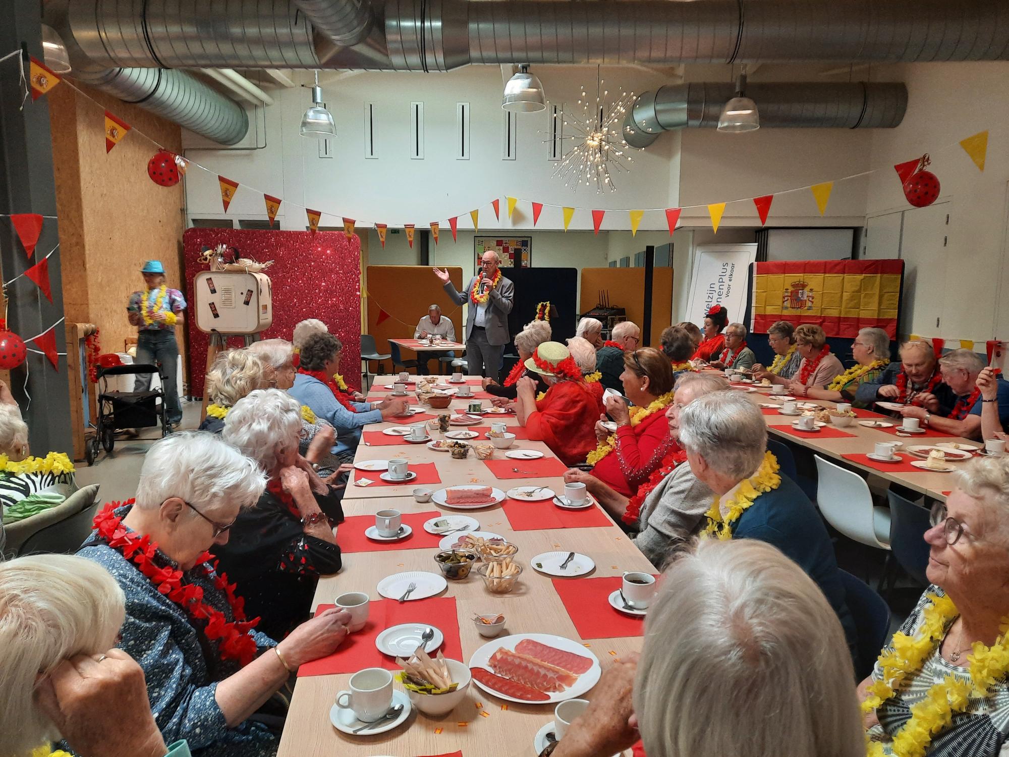 Tijdens de Week tegen Eenzaamheid genoten ruim 65 inwoners van 75 jaar en ouder van een feestelijke Spaanse middag in De Omslag. Wethouder Tjeerd Pietersma heette de gasten namens Gemeente Wormerland van harte welkom. De middag, georganiseerd door WelzijnWonenPlus en SCWO, stond in het teken van ontmoeting en gezelligheid. Met Spaanse hapjes, gebak en muziek werd het een dag vol verbinding. De sfeer was zo warm, dat bezoekers spraken van een 'Week van de Gezelligheid'. |