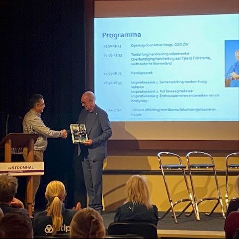 Wethouder Tjeerd Pietersma ontving het eerste exemplaar van de nieuwe Handreiking Valpreventie. Dit was op 30 september op de regiobijeenkomst ‘Samen sterk voor valpreventie van GGD Zaanstreek-Waterland en adviesbureau ZONH. Gemeente Wormerland en Oostzaan lopen in Nederland voorop als het gaat om valpreventie. |
