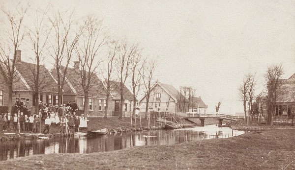 Noordeinde Oost-Knollendam richting Spijkerboor. Beeld rond 1895-1900. Rechts boerderij Hoeve Veelust.