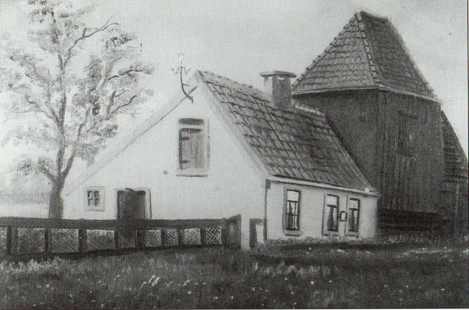 De oude kern van Neck had niet zoveel boerderijen, maar hier is er dan een. Al is het een foto van een schilderij, toch mag hij niet ontbreken. Deze boerderij stond in de onderdijk, Neck nr. 24 en was in 1937 gekocht door de heer P. Gans sr. voor een bedrag van ƒ 800, — van de firma G. Prins hout- en sloophandel aan de Neckerstraat. In 1946 is de kapberg gesloopt. In 1967 werd de boerderij verkocht en in 1970 in zijn geheel verbouwd door de familie H. Hellingman.