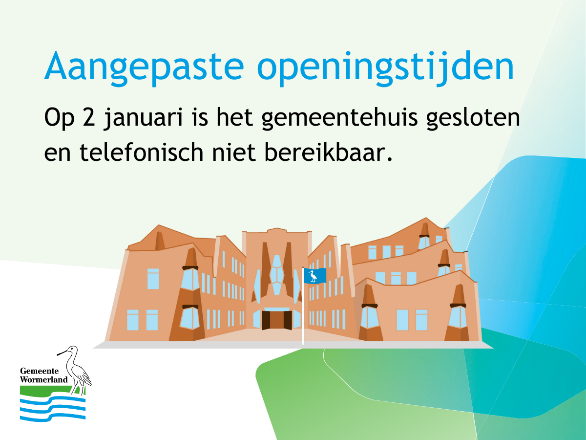 Op vrijdag 2 januari 2026 is het gemeentehuis gesloten. Als je belt met een calamiteit, word je doorgeschakeld naar onze telefoondienst.