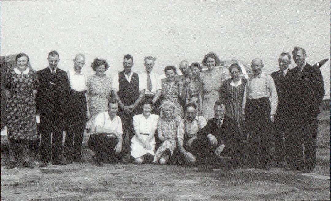 In 1947 ging de buurtvereniging Oud-Neck, nadat zij gespaard hadden, een dag naar het vliegveld Ypenburg. V.l.n.r. mevr. Van Twisk, dhr. Van Twisk, W. Groot, mevr. Kok, dhr. Kok, L. van Sinderen, mevr. Mayers, H. Pilkes, mevr. Pilkes, Griet Band, mevr. Mayers, dhr. Mayers (schoenmaker), Dirk Pilkes, Cor Buiten, Jaap Marees, mevr. Van Sinderen, mevr. N. Marees-Hooyberg, Dries Mayers en Herman Band.