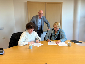 Directeuren Cécile Engelsma (WormerWonen) en Ingrid van Maarschalkerweerd (WelzijnWonenPlus) starten een samenwerking om huurders te helpen langer zelfstandig te wonen. Wethouder Tjeerd Pietersma: ‘Dit mooie resultaat van samenwerking draagt bij aan onze gezamenlijke doelstelling om kwetsbare inwoners van Wormerland in staat te stellen langer zelfstandig te blijven wonen in de eigen woonomgeving.’