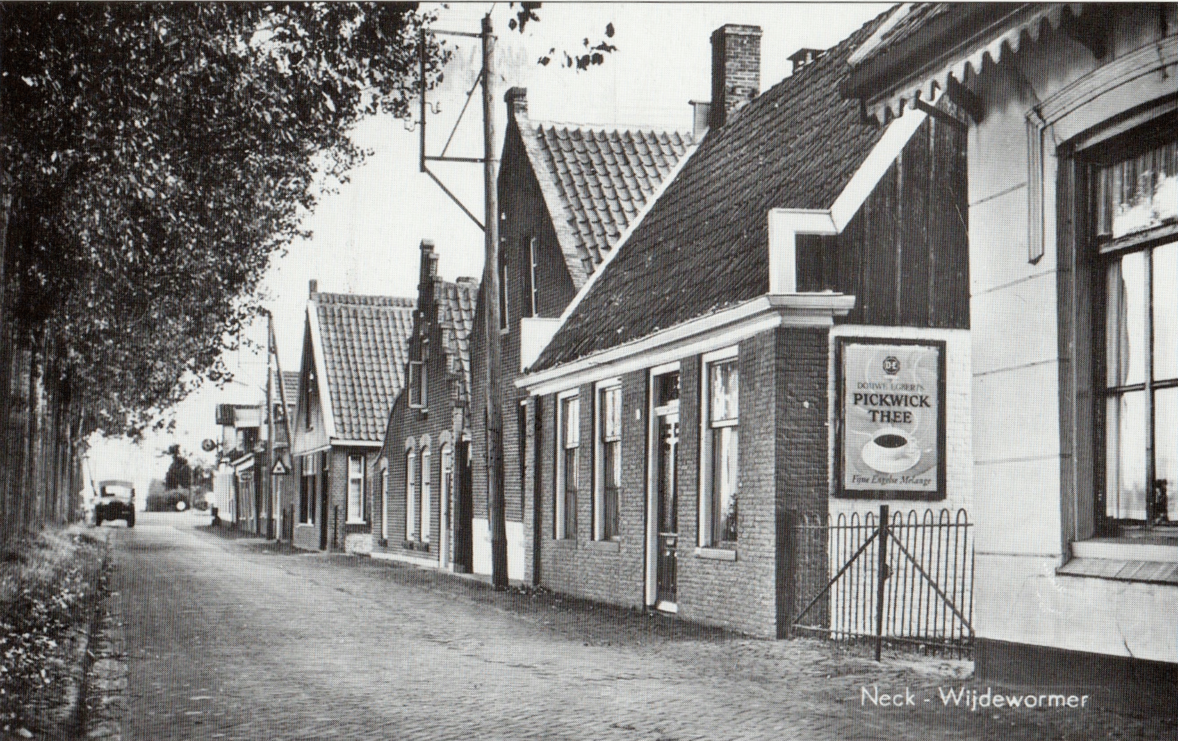 Mevrouw Breebaart-Dobber was de grutter van Neck en in de zestiger jaren verkocht zij niet alleen kruidenierswaren, je kon er ook ansichtkaarten kopen, zoals deze met een gezicht op oud Neck.