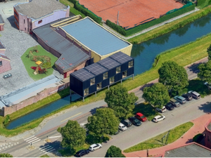Deze tijdelijke uitbreiding komt definitief naast het schoolterrein, boven het water langs de Rigastraat.